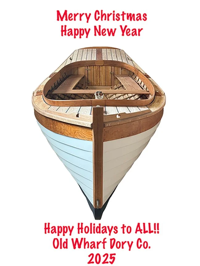 The Trap Skiff build is well underway. I have been working on it, but as Walt Simmons, the designer told me,”It’s a hard boat to build”. The cherry oval coamings with laminated ends are completed, the white cedar decks are installed and the seams filled with black TeakDeck caulk, the rudder and tiller are built and varnished, oarlock blocks are being fabricated and installed, chain plates are in, rub rails next. After the rub rails are installed, I will apply paint, varnish, and oil. Then the boat will go out the shop door to be covered and stored for the winter. During the winter I will build the spars and the 2 pairs of 9’ oars. We will rig and launch in the spring of 2026. Build photos are on my Instagram page, https://www.instagram.com/oldwharf/ .