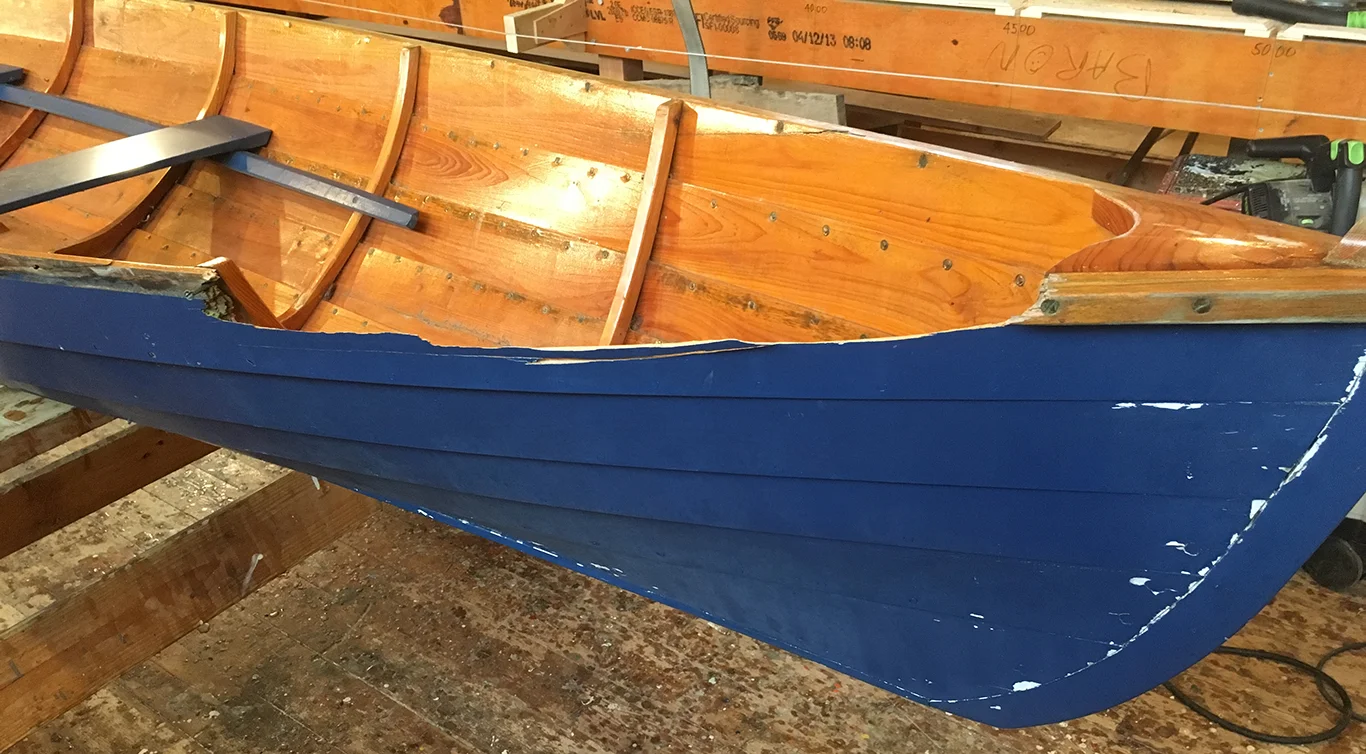 The 17' Herreshoff/Gardner row boat repaired, repainted, and ready to go...